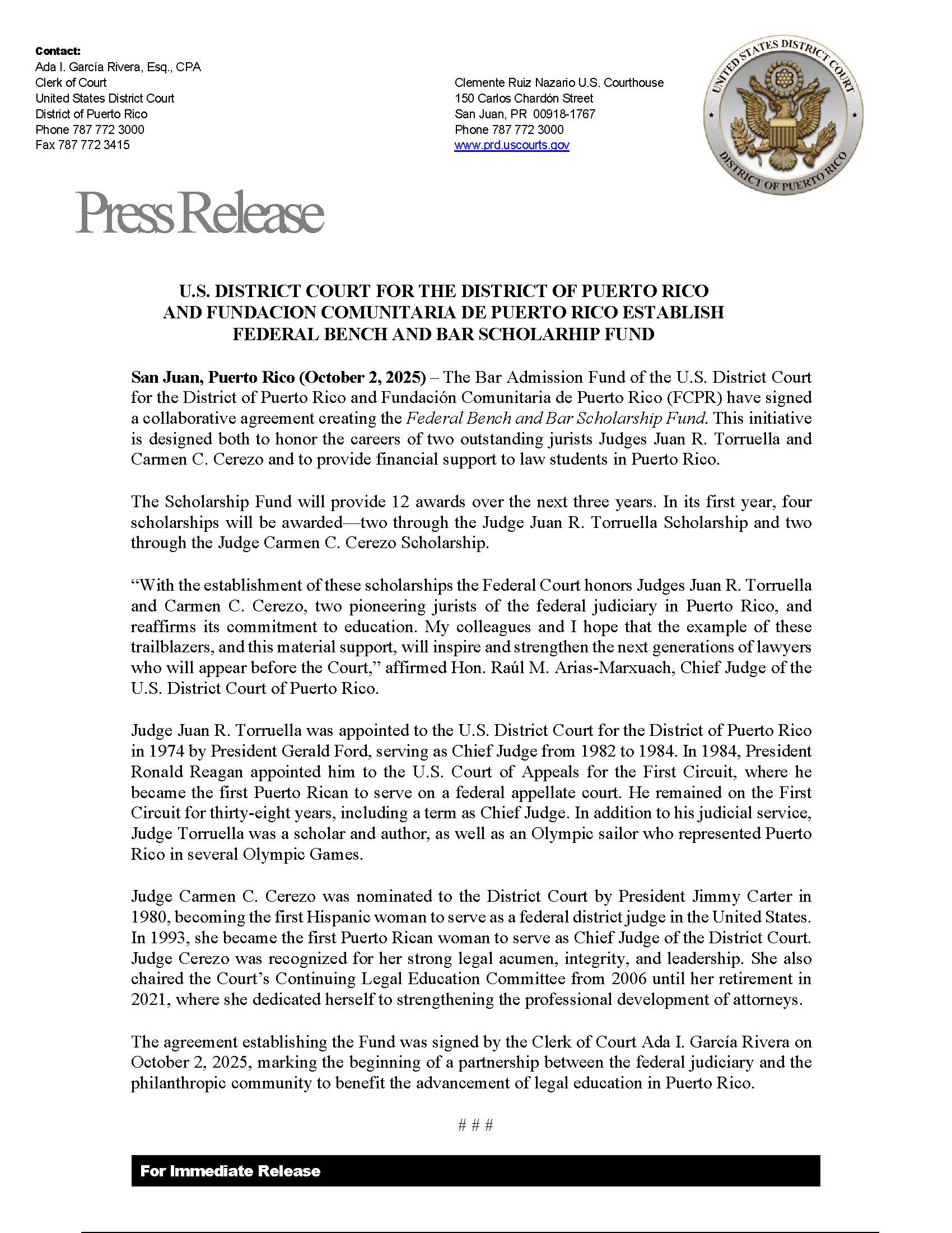 For more information on Electronic Bar Renewal for the District of Puerto Rico, click on the following URL: 2025 Electronic Bar Renewal Fees