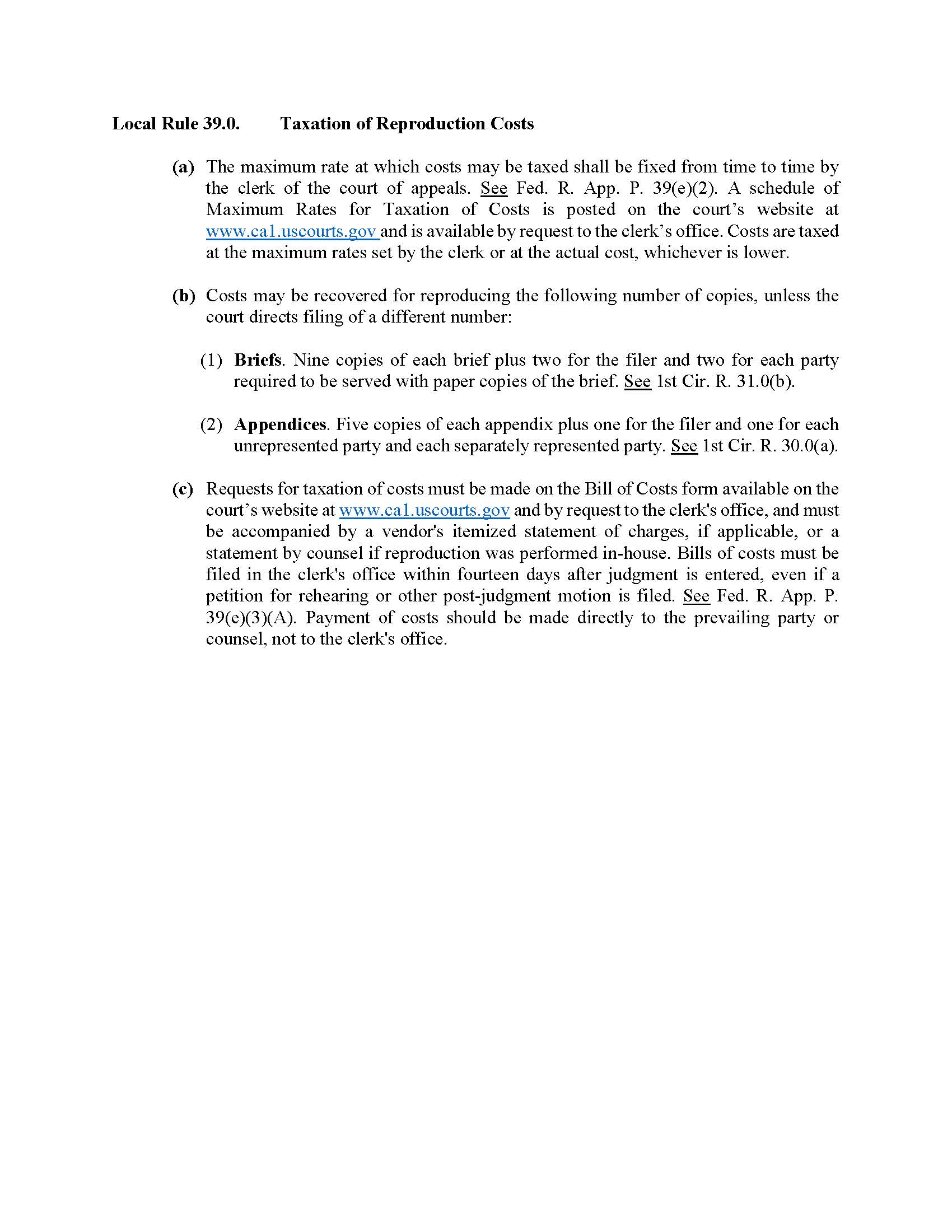 Notice of Adoption to Local Rule 39 of the United States Court of Appeals for the First Circuit