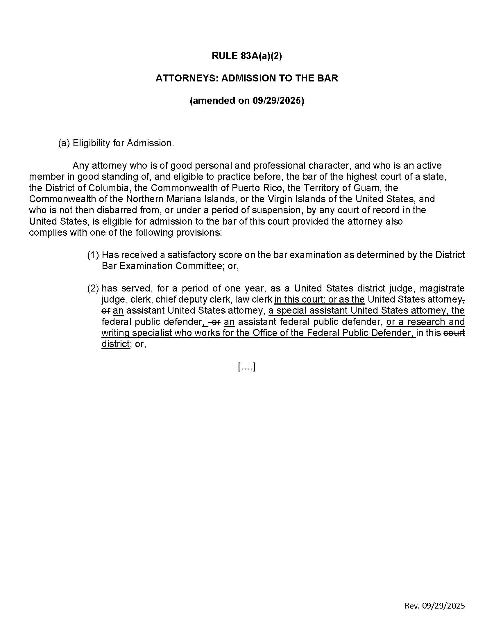 For a PDF version of this document, click on the following URL: Order Re: Request for Public Comments for Amendments to Local Civil Rule 83A(a)(2)